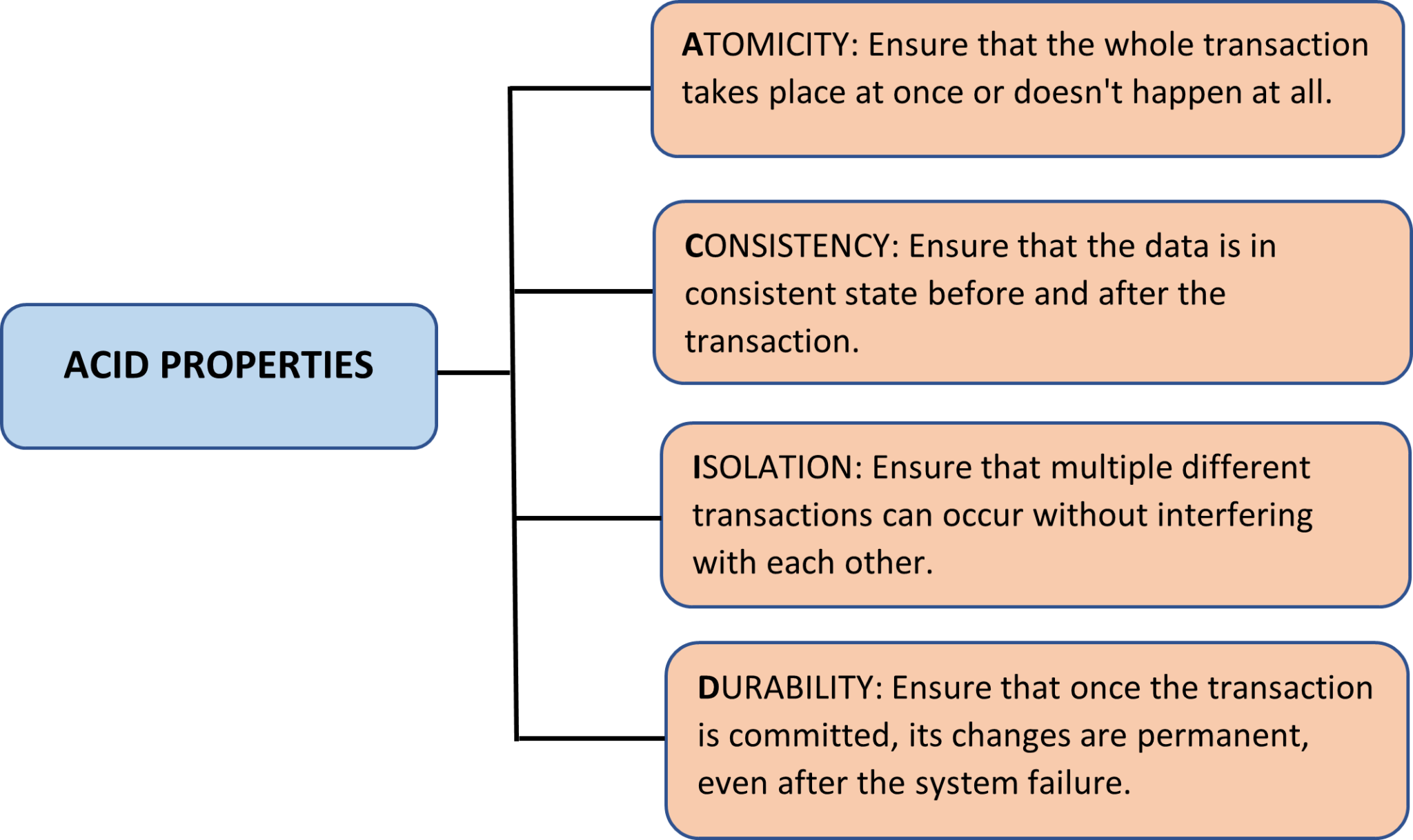 Following fundamental properties of SQL database ensure that database systems are consistent even after the system failures.